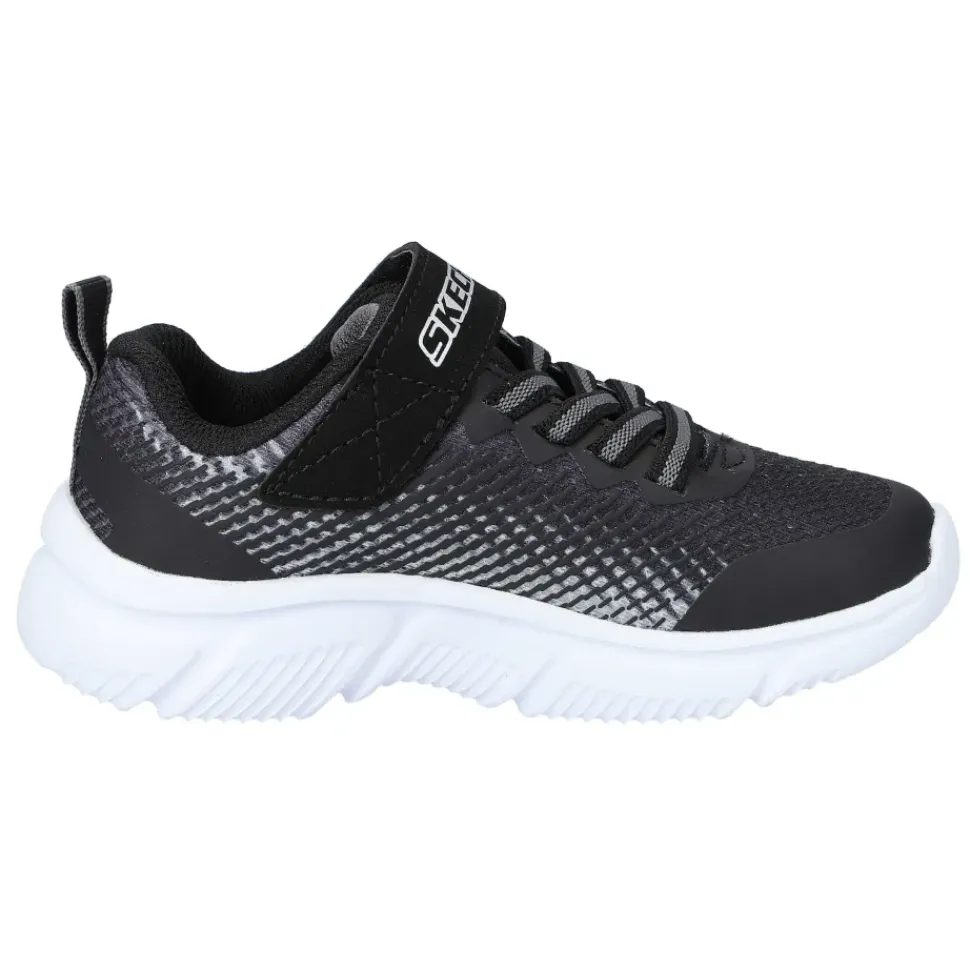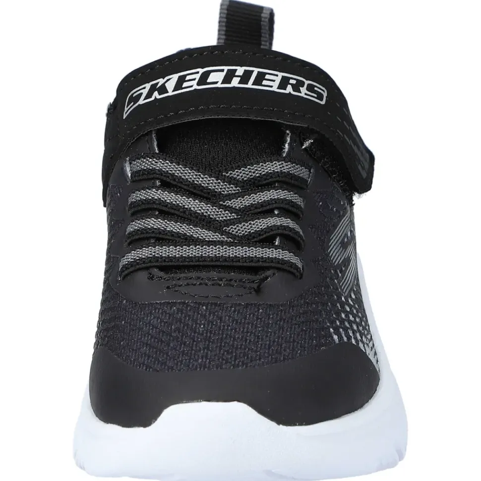 Die Kinderschuhe von Skechers sind perfekt für ihre Kleinen. Durch die angedeutete Schnürung aus Elastikbändern muss nicht geschnürt werden und das An- und Ausziehen wird zum Kinderspiel.