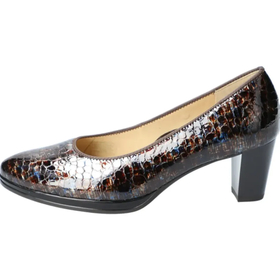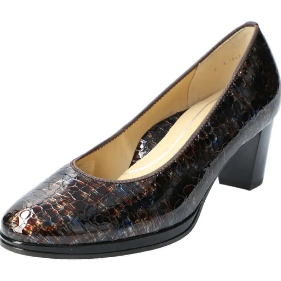 Das Lackleder verleiht dem Damenschuh eine besonders hochwertige Optik. Die Decksohle aus Leder sorgt für Komfort und ein optimales Fußklima. Der Blockabsatz streckt das Bein optisch und unterstützt das komfortable Tragegefühl bei jedem Schritt.