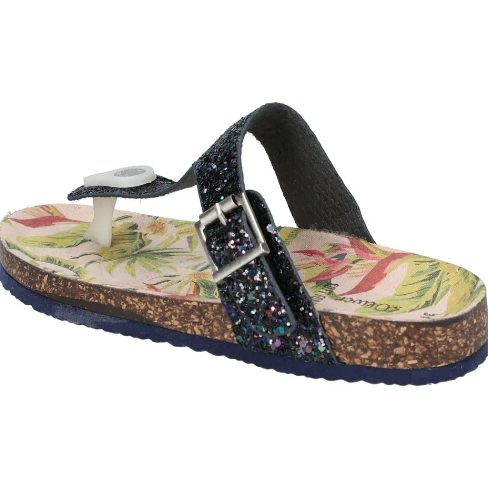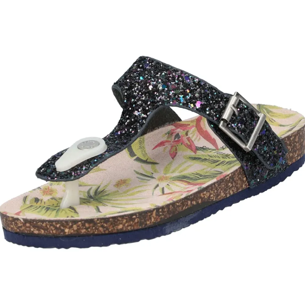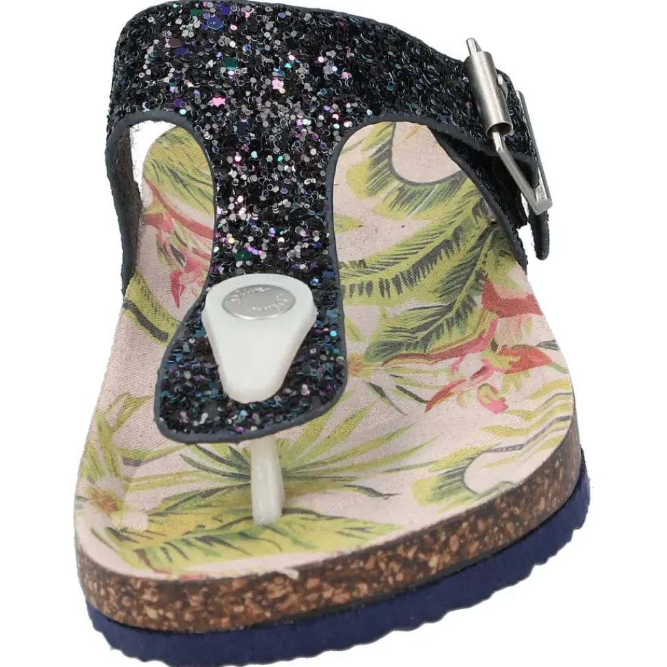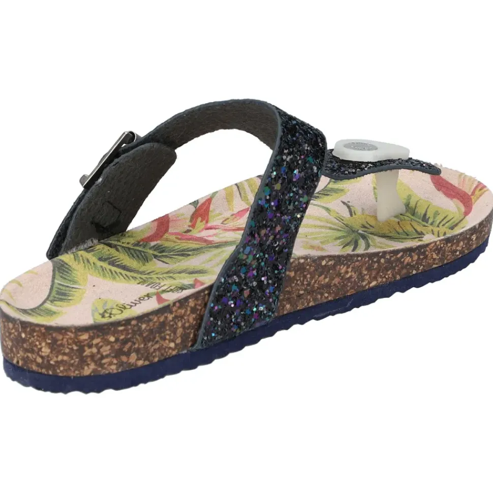 Süße Zehentrenner von S. Oliver in farbenfrohen Farben und mit Glitzersteinchen. Durch den Schnallenverschluss wird das An -und Ausziehen ein Kinderspiel.
