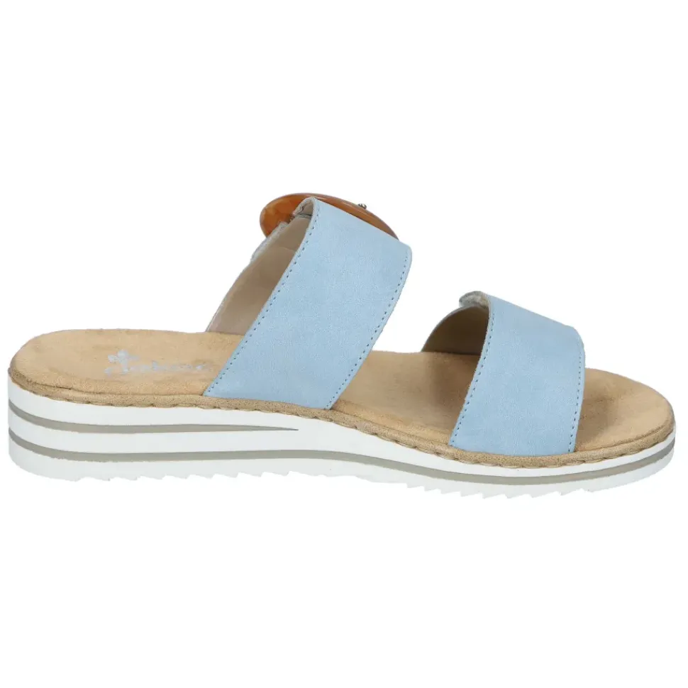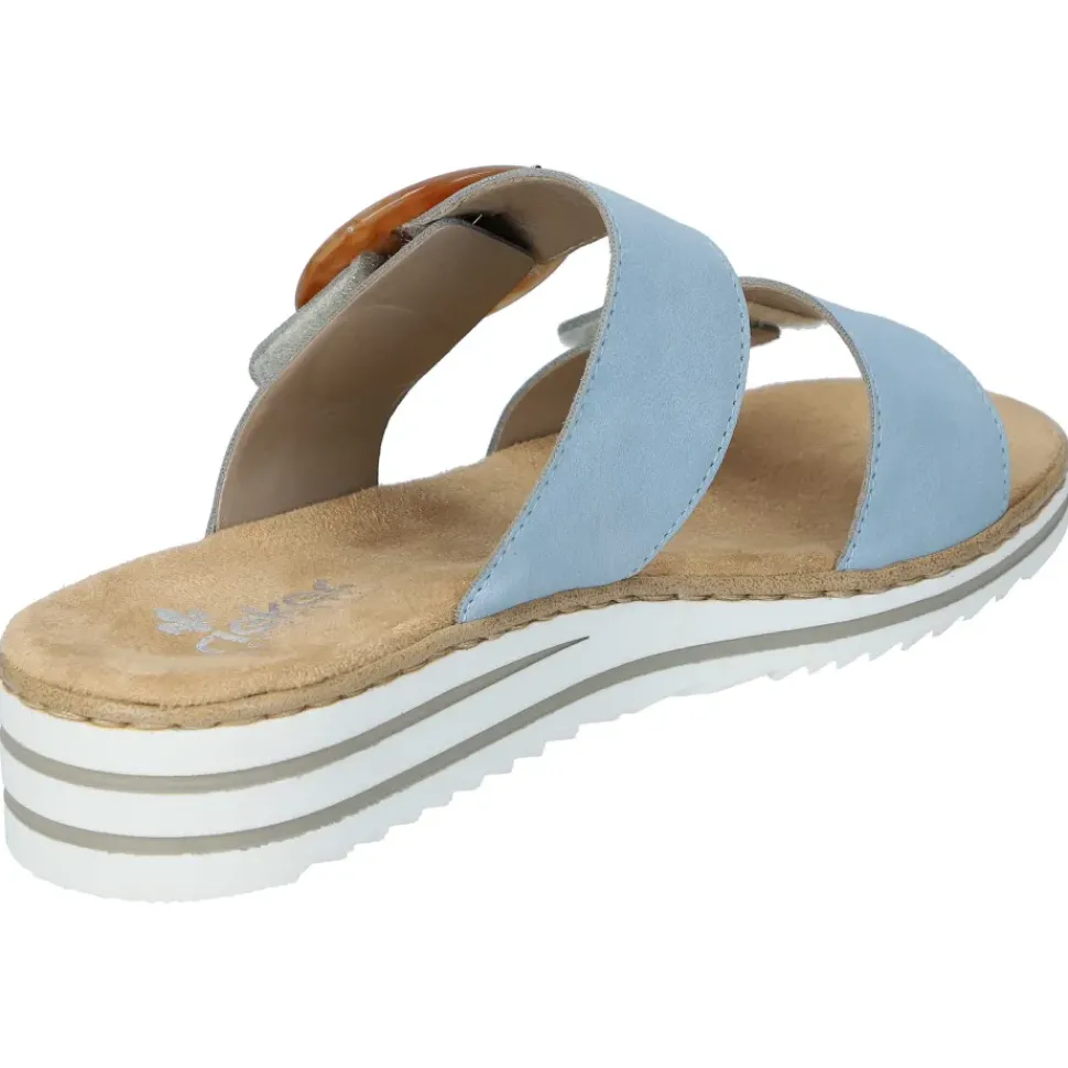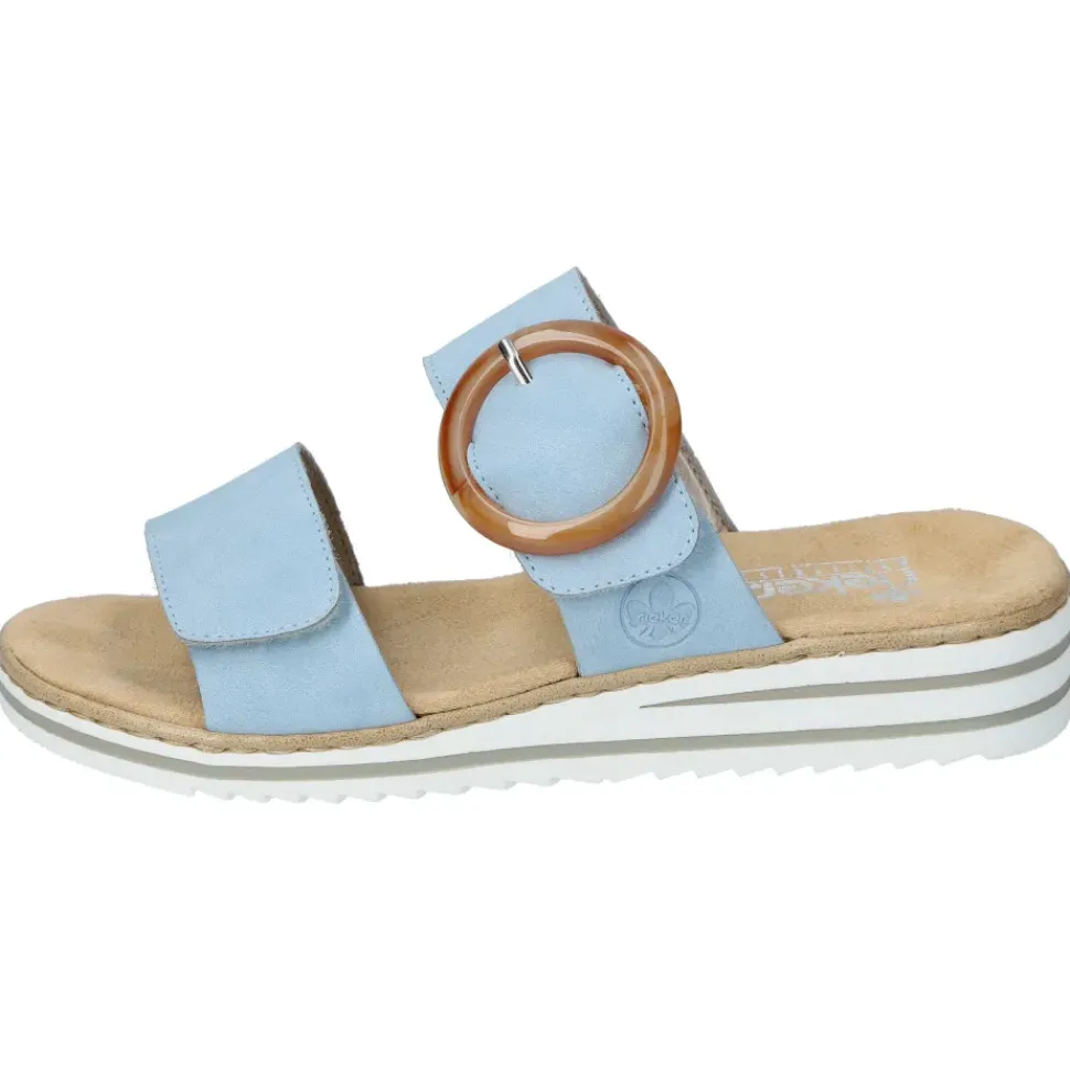 Mit dieser Rieker Pantolette genießen Sie ein optimales Trageerlebnis. Die Innenausstattung aus weich gepolstertem Textilmaterial gibt auch innen ein tolles Tragegefühl. Die beiden Klettverschlüsse dienen der individuellen Anpassung.