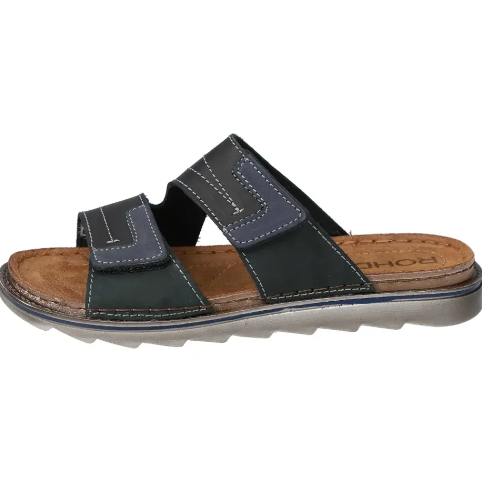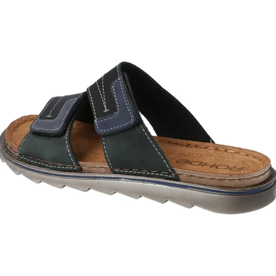 Bequeme Herren-Pantolette von Rohde. Dank den Klettverschlüssen ist der Ein- und Ausstieg sehr leicht und die Decksohle aus Leder verspricht ein angenehmes Tragegefühl.