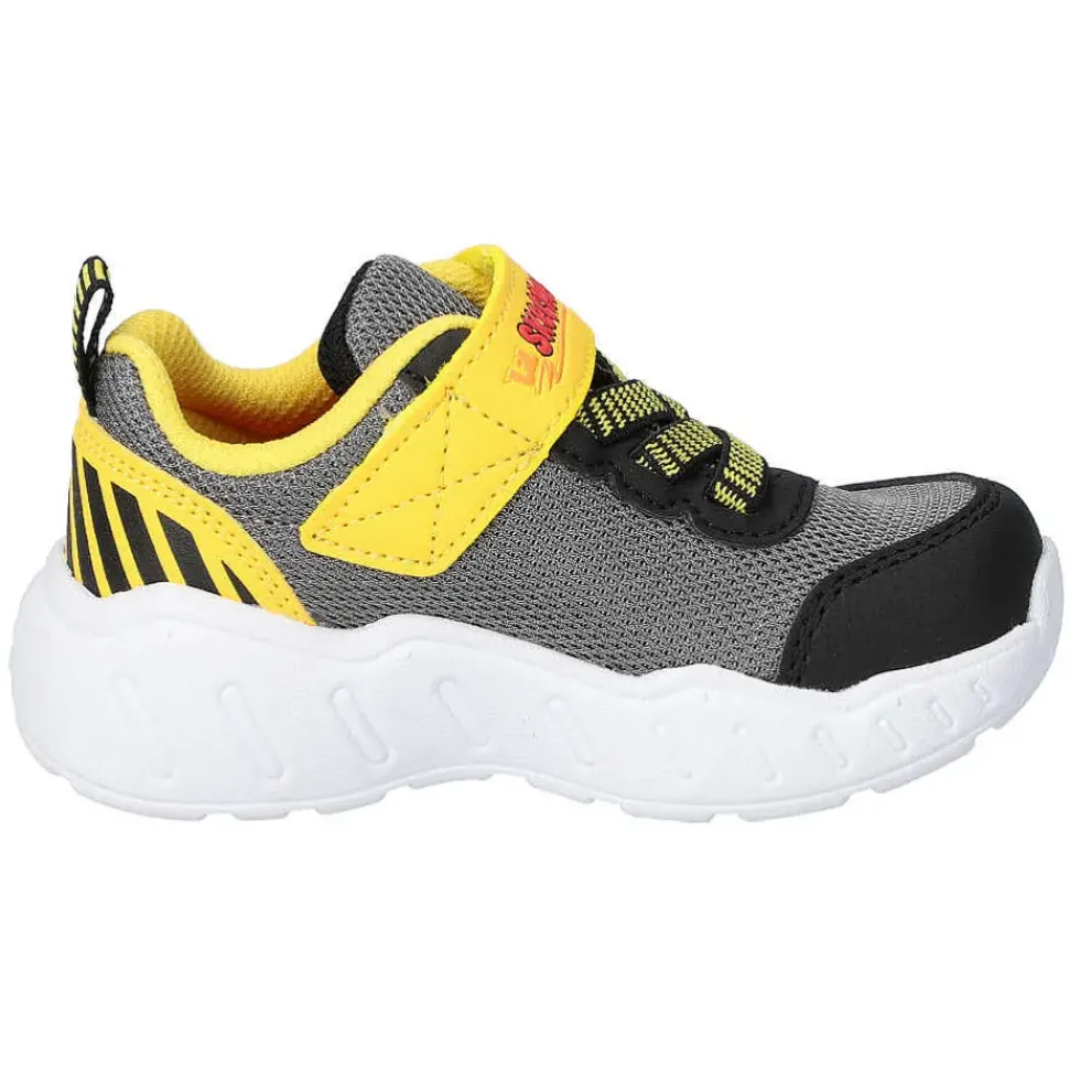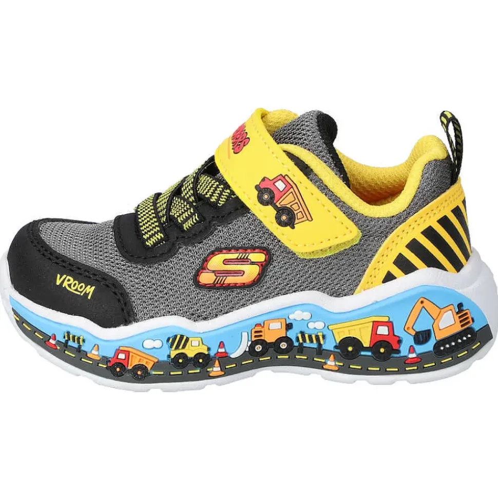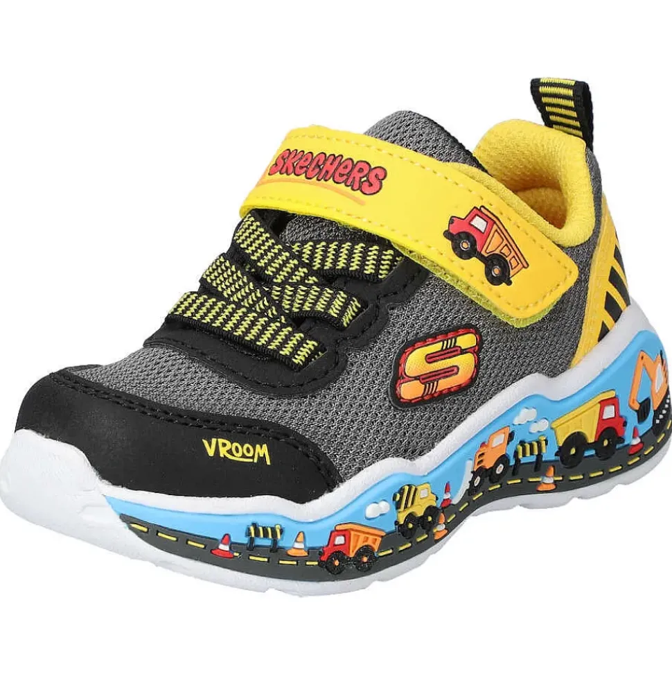Die Kinderschuhe von Skechers sind perfekt für ihre Kleinen. Durch den Klettverschluss und der angedeuteten Schnürung aus Elastikbändern muss nicht geschnürt werden und das An- und Ausziehen wird zum Kinderspiel.