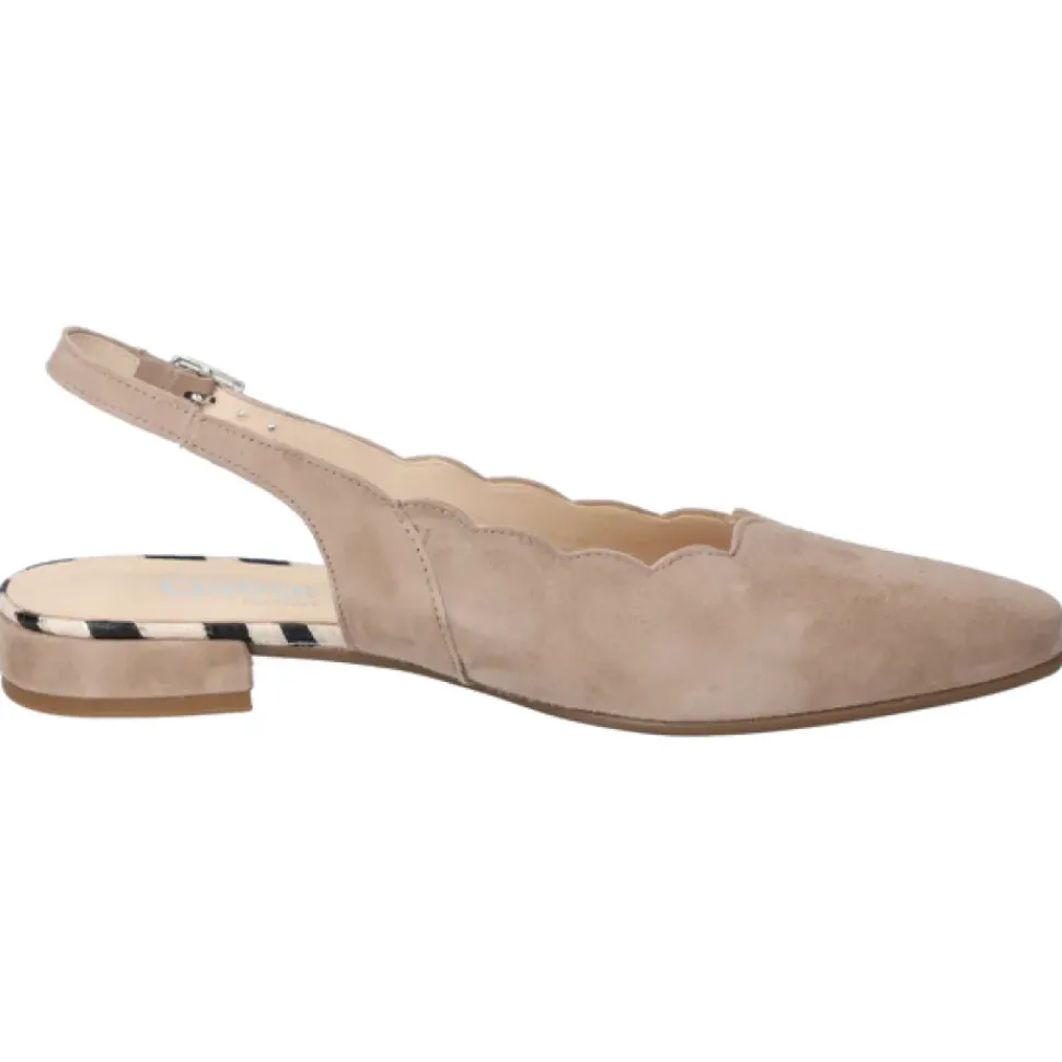 Der dezente Slingpump in Rauleder von Gabor wirkt durch die Schuhspitze elegant und feminin. Wunderbar in Szene gesetzte Beine zaubert der kleine Blockabsatz. Die breitere Auftrittsfläche bietet mehr Volumen im Ballen- und Ristbereich.