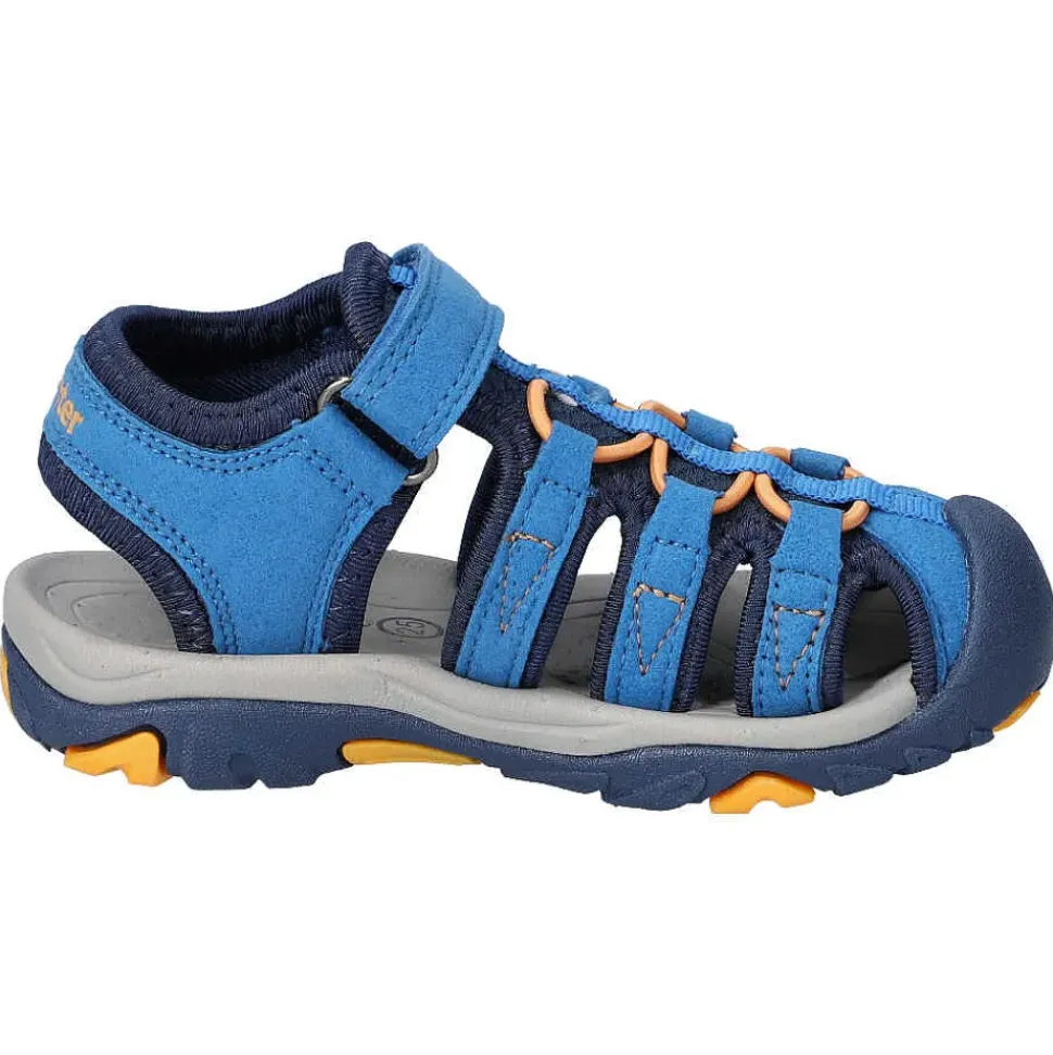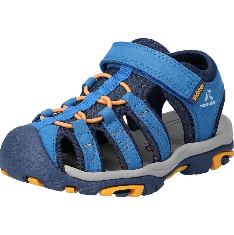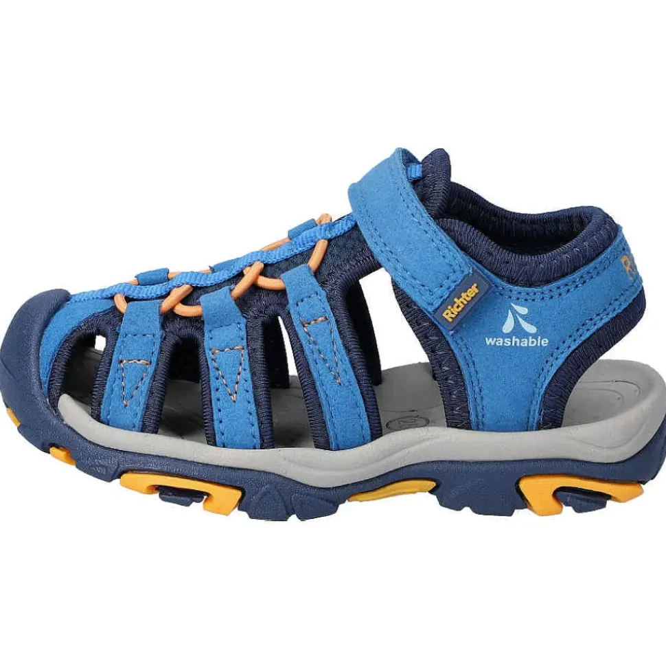 Hübsche Kinder Trekkingsandalen von Richter. Die Sandale ist sehr robust und das bequeme Fußbett sorgt rund um die Uhr für den besten Komfort.