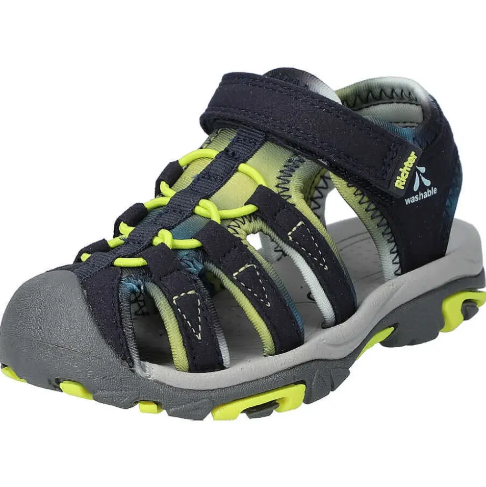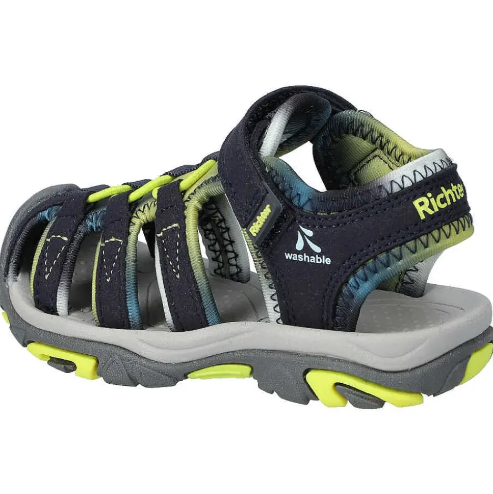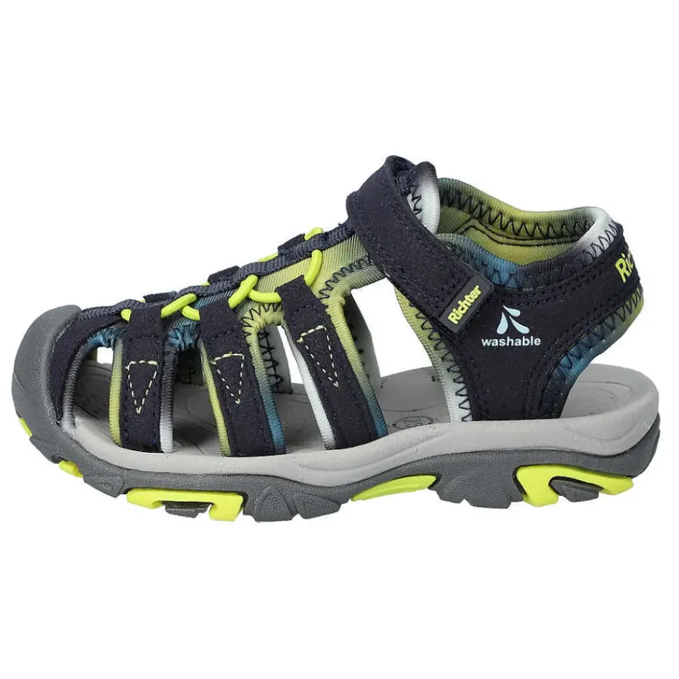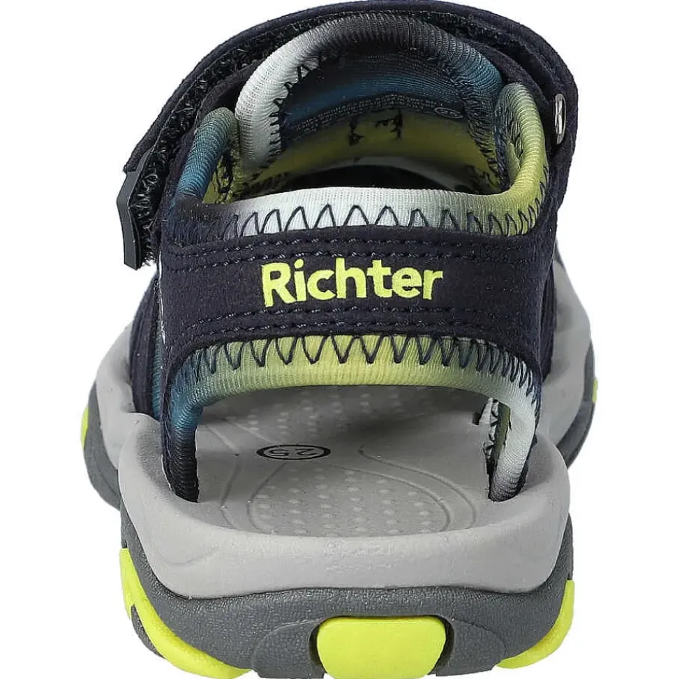 Sportliche Kinder-Sandalen von Richter. Sie sind der ideale Begleiter im Alltag. Durch den Klettverschluss und die sehr flexible Sohle wird eine sehr gute Passform ermöglicht.
