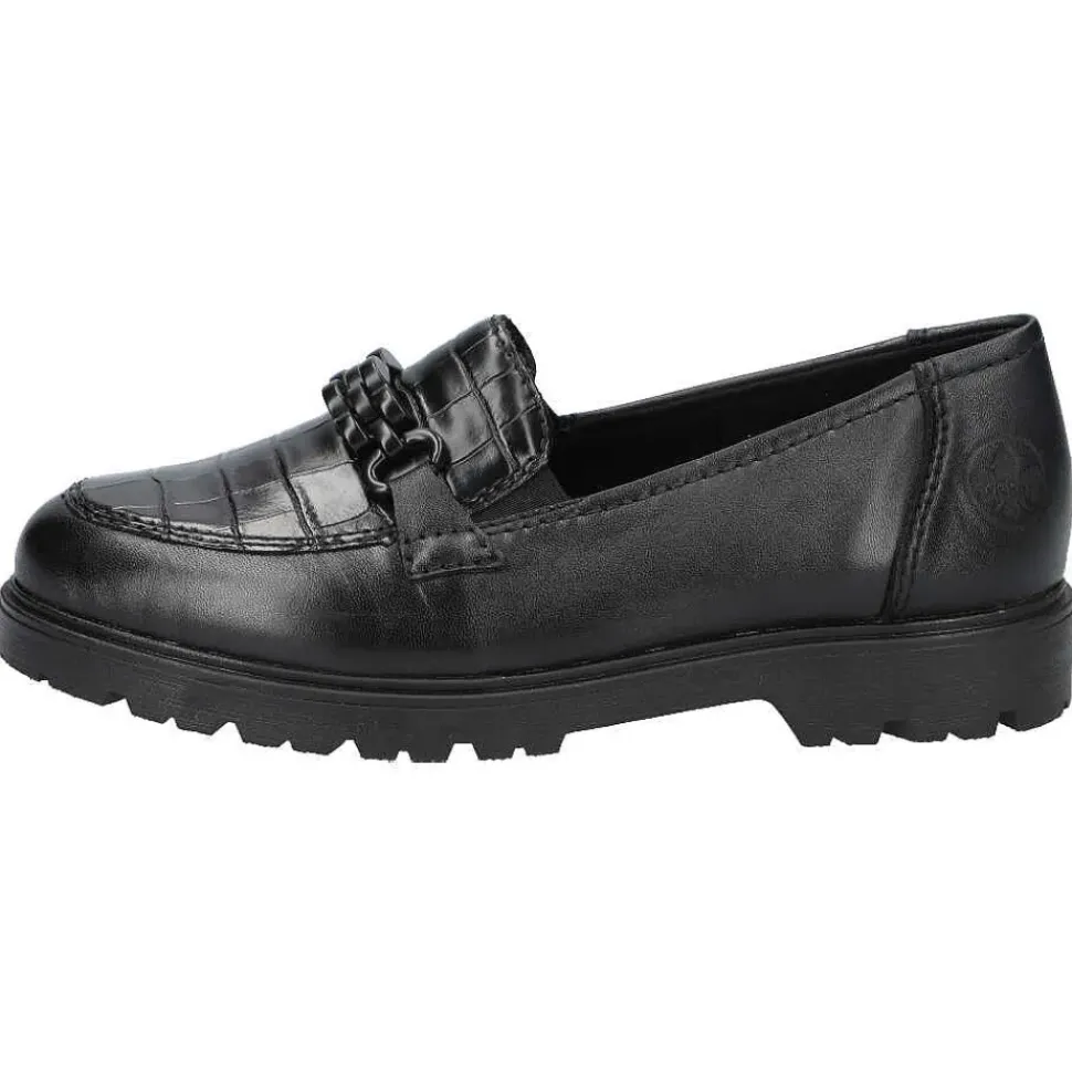 Ganz in schwarz präsentieren sich die Slipper von Rieker. Die Slipper überzeugen durch ein leichtes Tragegefühl und sind sehr bequem.