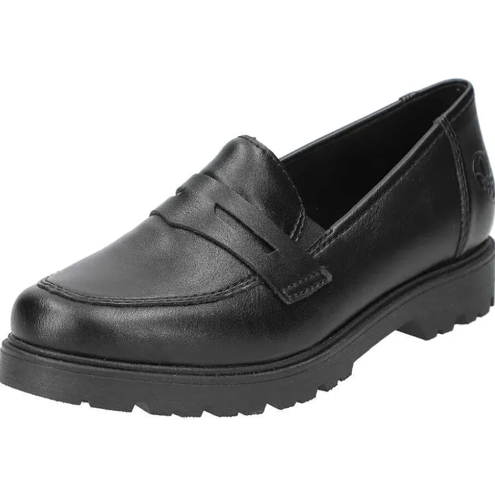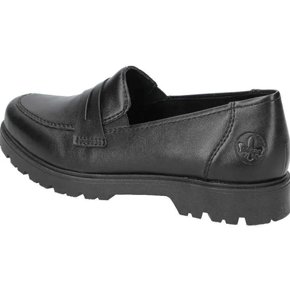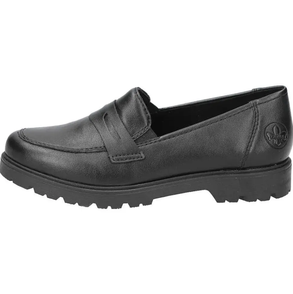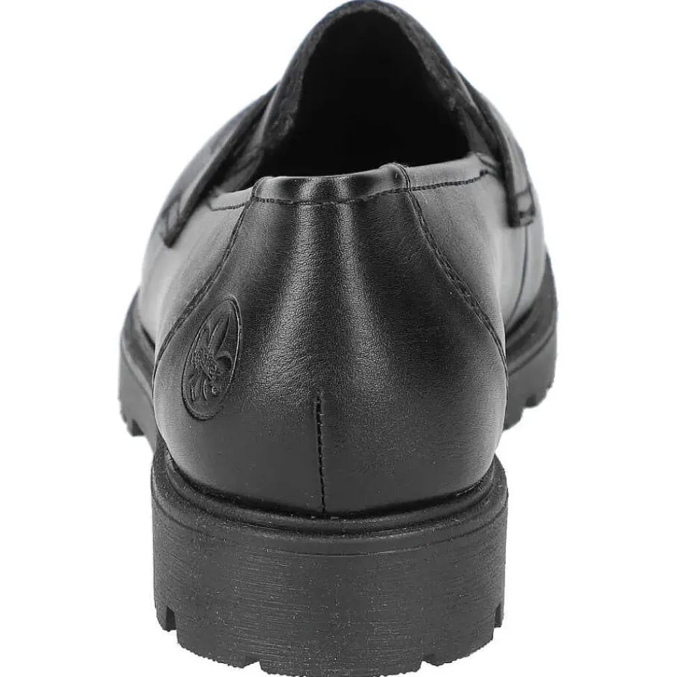 Ganz in schwarz präsentieren sich die Slipper von Rieker. Die Slipper überzeugen durch ein leichtes Tragegefühl und sind sehr bequem.