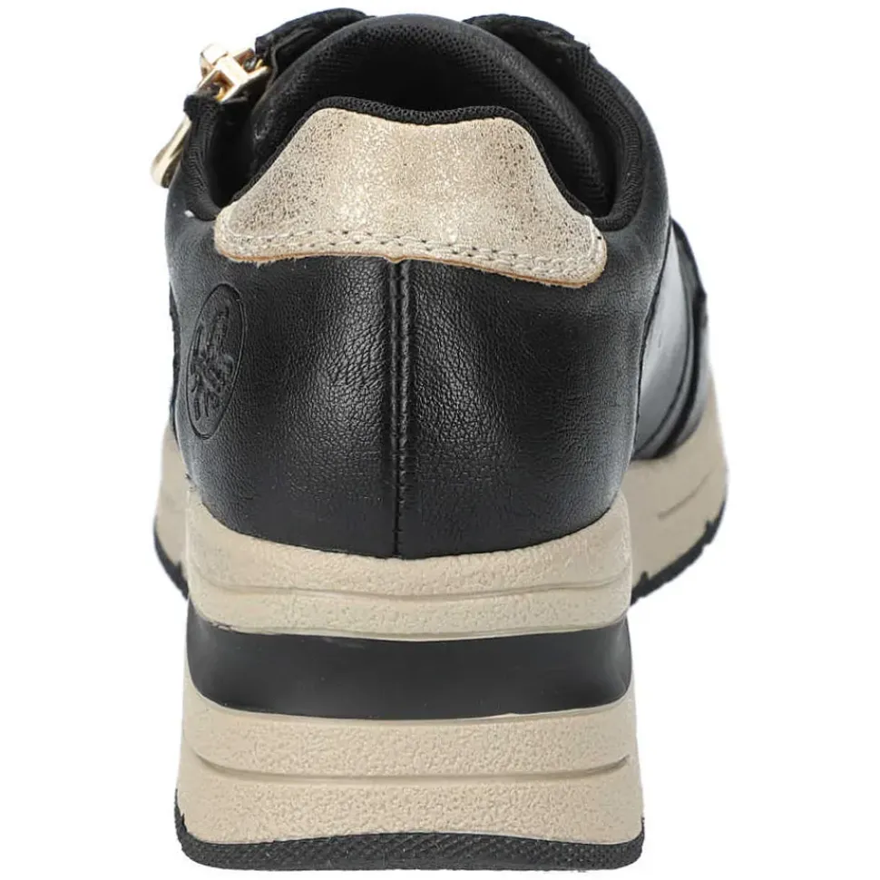 Sportlich und modern zeigt sich der Sneaker von Rieker. Er überzeugt durch feine Logo-Details und einen hohen Tragekomfort.