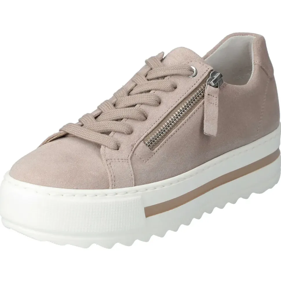Komfort Damen-Sneaker von Gabor mit modischer Plateau-Sohle und Colorblocking-Details. Durch den seitlichen Reißverschluss wird das An- und Ausziehen zum Kinderspiel.