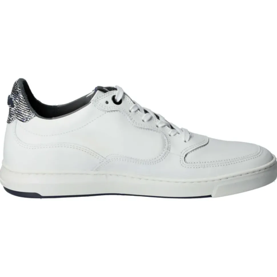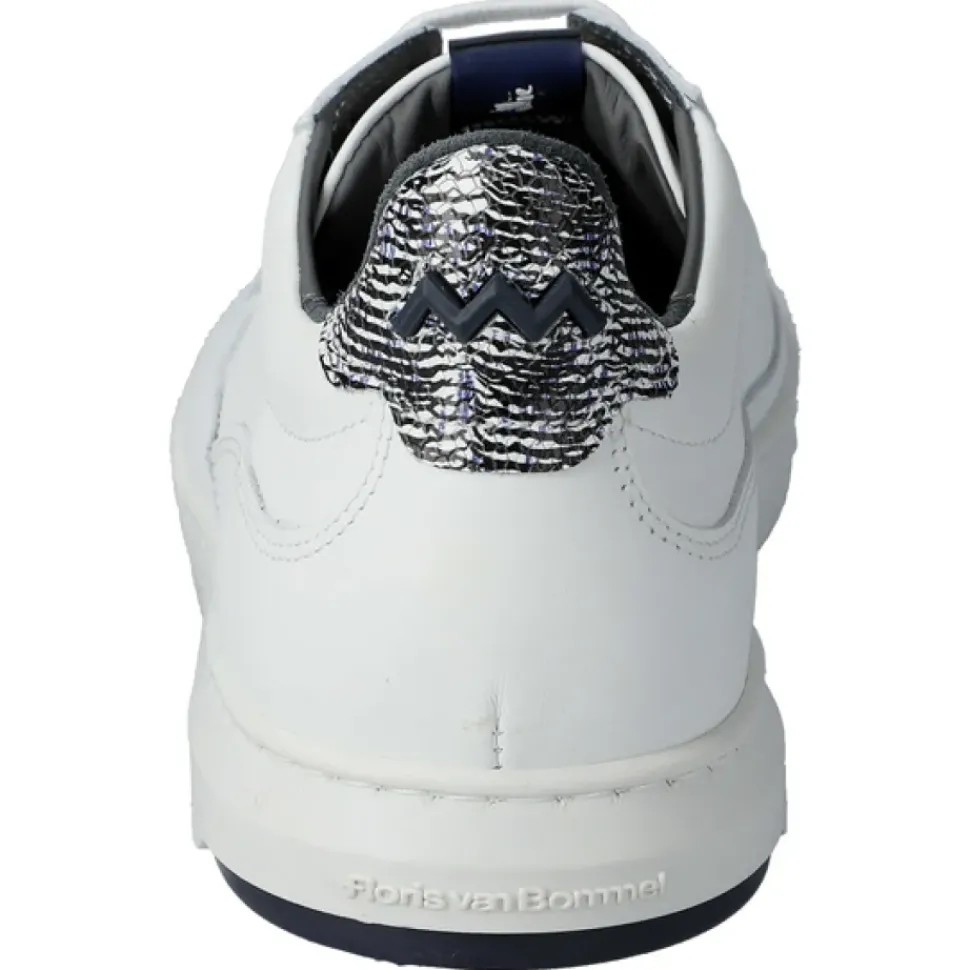 Das minimalistische wirkende Modell ist mit charakteristischen Floris van Bommel Elementen versehen. Die Leder-Fersenkappe ist mit einem auffälligen Print versehen und die Gummisohle mit kontrastierender Lauffläche rundet den Look des Modell ab.