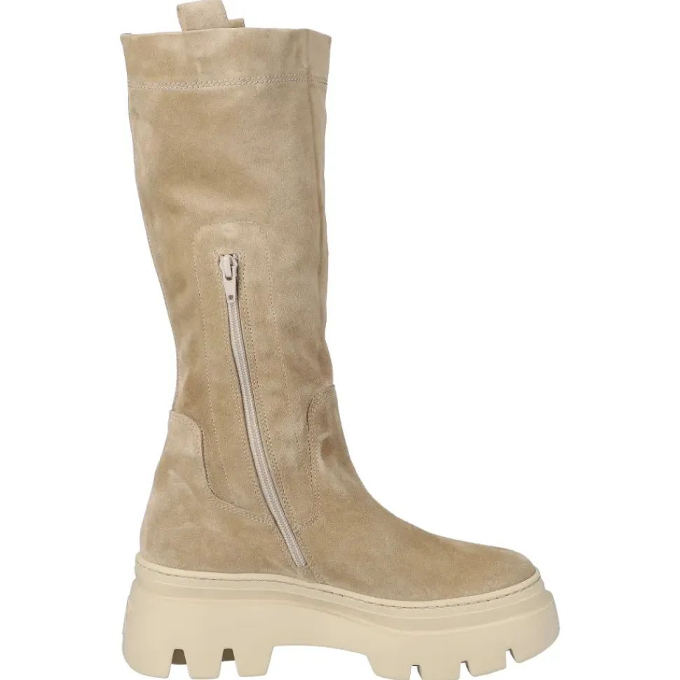 Mit diesen modischen Stiefeln von Paul Green geht es stylisch in den Tag. Das trendige aber cleane Design aus beigem Veloursleder macht die Boots zu echten Eyecatchern. Der futterlose Schaft rundet den coolen Look gekonnt ab