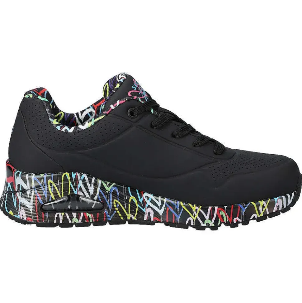 Der Sneaker von Skechers ist ein absolutes Highlight. Er wurde in Zusammenarbeit mit dem Wandmaler J. Goldcrown entworfen. Die Sohle bietet eine sehr gute Dämpfung und einen hohen Tragekomfort.