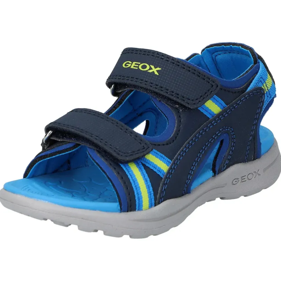Hübsche Kindersandalen von Geox. Die Sandale ist sehr robust und das bequeme Fußbett sorgt rund um die Uhr für den besten Komfort.