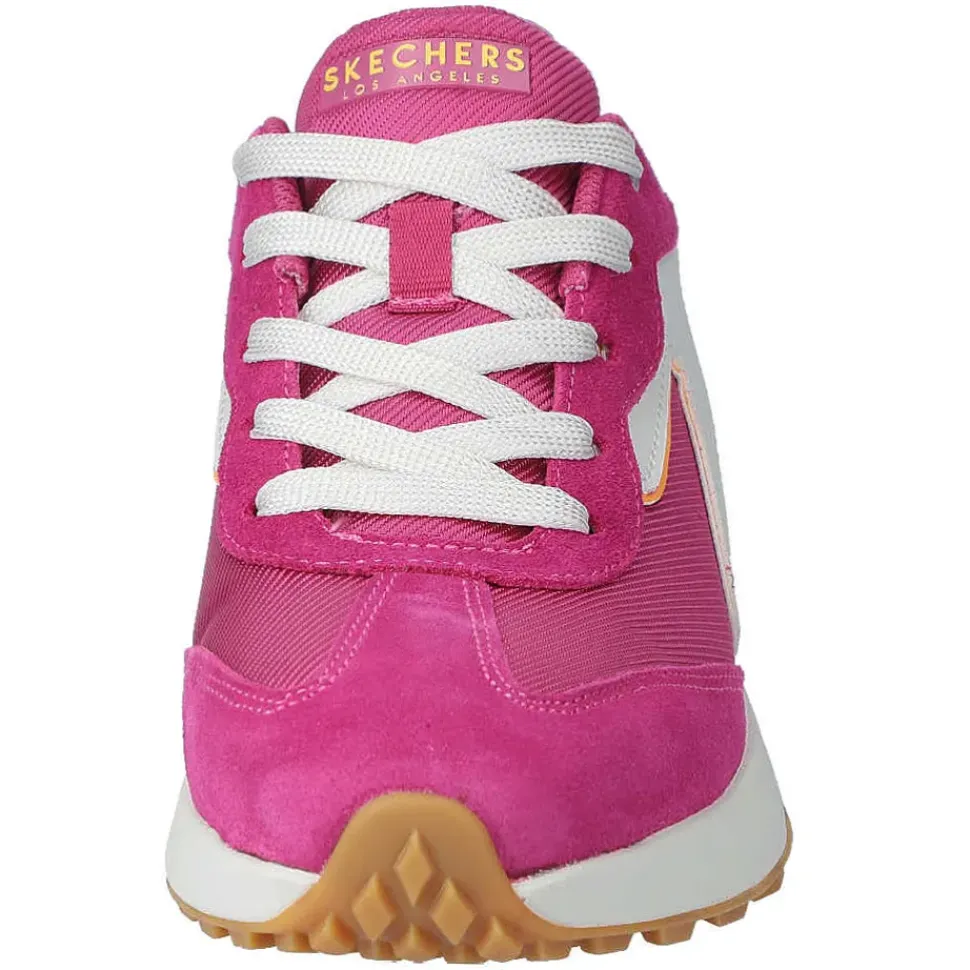 Bei den Damen-Sneakern von Skechers treffen Design und Komfort aufeinander. Durch die Air-Cooled-Memory-Foam sind die Füße immer weich gebettet und das sportliche Design rundet den Sneaker ab.